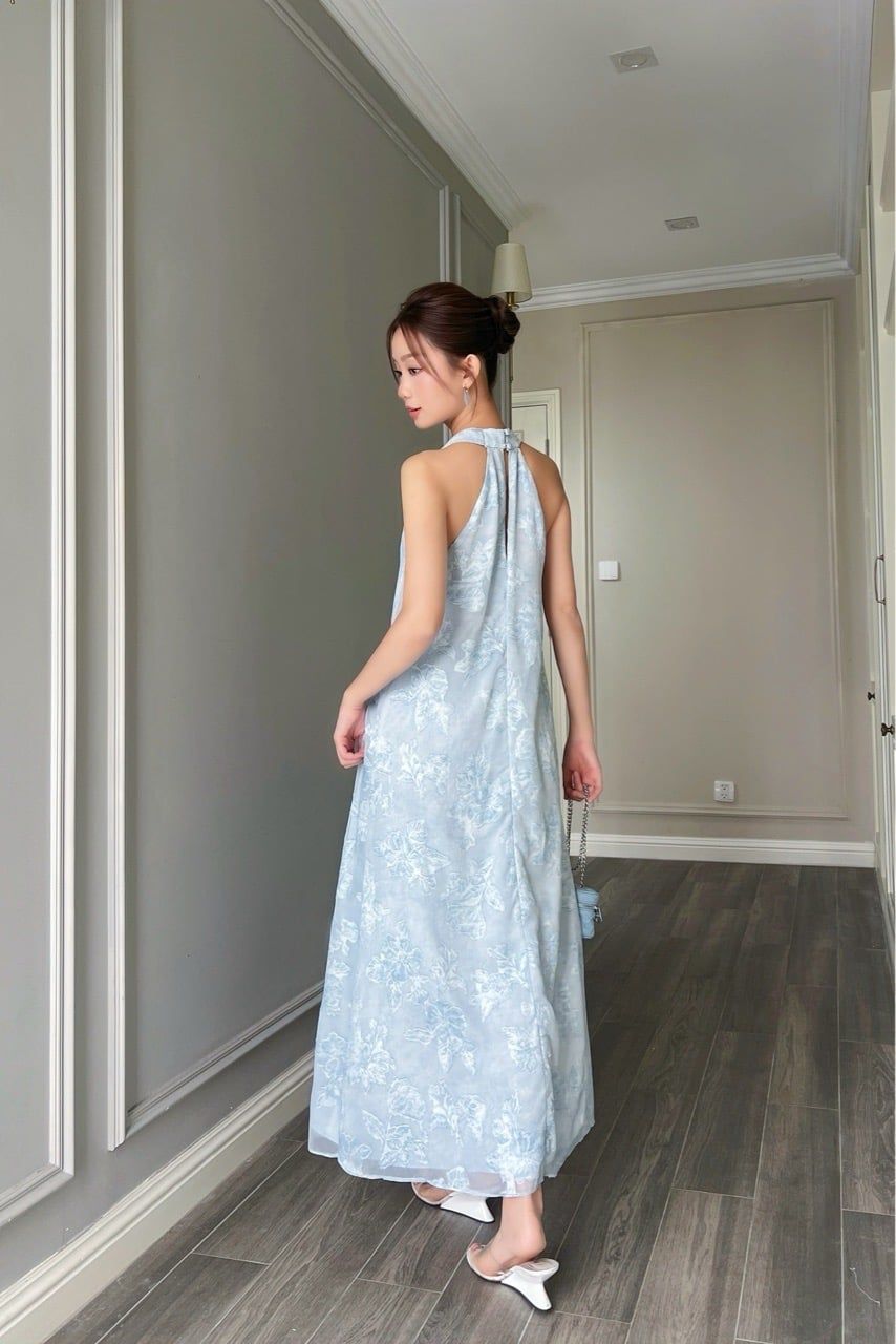 - (MỚI) Đầm yếm chít li vai tơ gân Xanh
