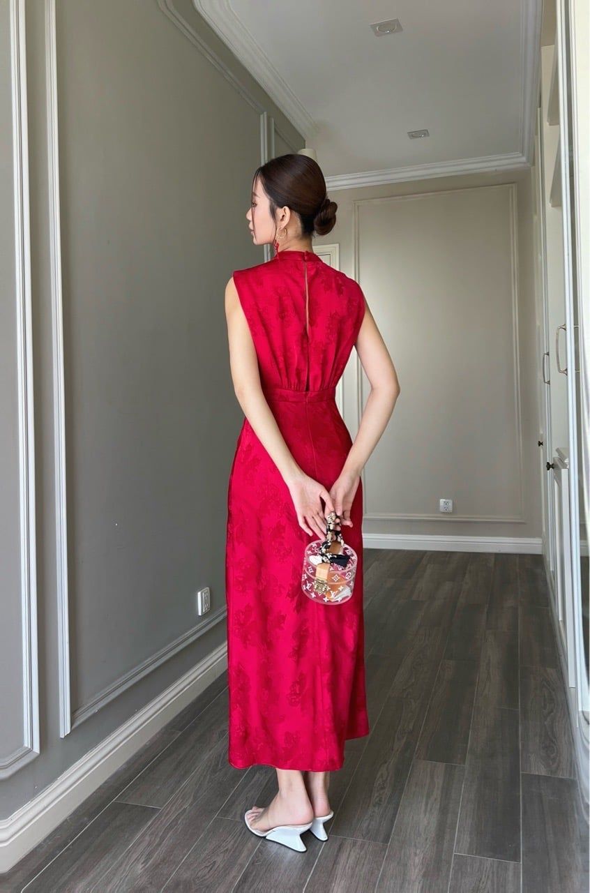 Đầm sát nách cổ chân lụa ngư vũ Đỏ