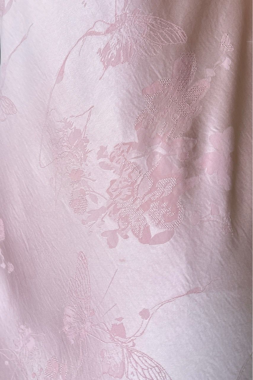 Đầm yếm xếp ly nhíu cách điệu lụa hoa Hồng